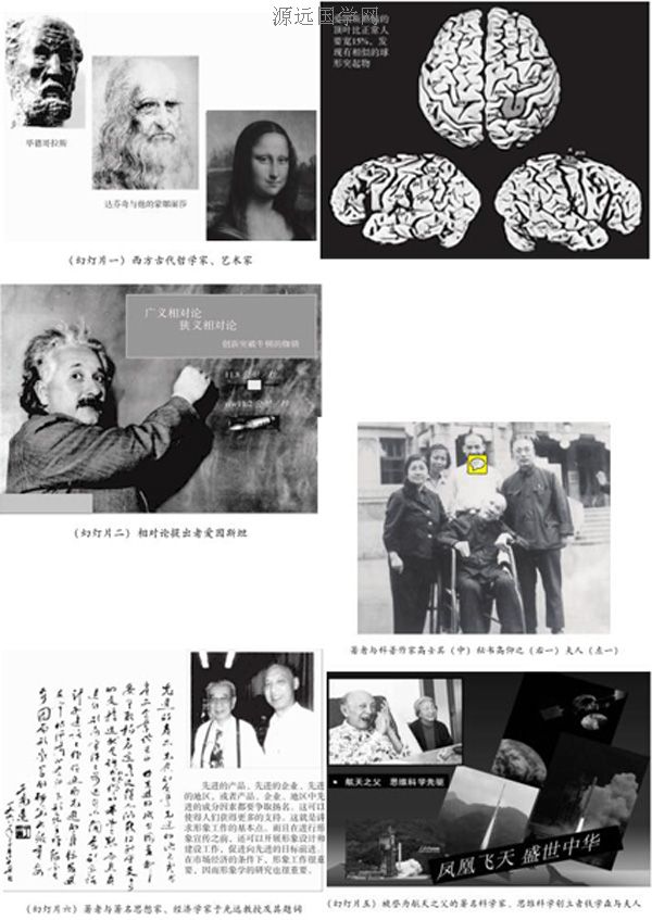 我庆幸在大学教过数学,在音乐学院学过作曲,为文艺与科技结合最好的科普作家高士其老先生推过轮椅。高老先生因科学实验残疾脑部不能说话,却 饱含思想情感,用常人听不懂的“喔喔……嗯嗯”之声,竟让老秘书高仰之 记下多达500万字的科普诗文。(见幻灯片四)他用深邃而优美的文学语言,揭密大自然、探索微观世界,让人遨游太空、畅想未来,进人高远的精神境 界,表达了他身残志坚、拼搏自强、奋发向上、热爱生活、关爱祖国的科学事 业与人类生态和谐的思想情感。我曾亲眼见他在会场上昏厥数次被抢救,但仍坚持参会的情景,让我终生难忘!于是,踏着前辈的足迹,展开科学与文化的 羽翅,在近30年的时空里,著者创立了形象学。因为形象学跨度宽、含量大,天文地理,文史哲社,工农兵学商,无所不包,只要见物,必有其“形”,还有形象思维的“萦绕”……正因为如此,1996年《形象学》初稿寄给钱学森 老人和于光远前辈。于光远是思想家、经济学家,谙悉人文学科,给我题了一段文字鼓励我(见幻灯片六);钱老因身体不好,没有题字,委托其表妹、人民大学教授钱学敏来信说:“!形象学》的主要内容我已读给钱老听了,很好!希望你能在形象学的学科领域有所作为,特别是形象思维的研究与应用更为重要,望你努力!”